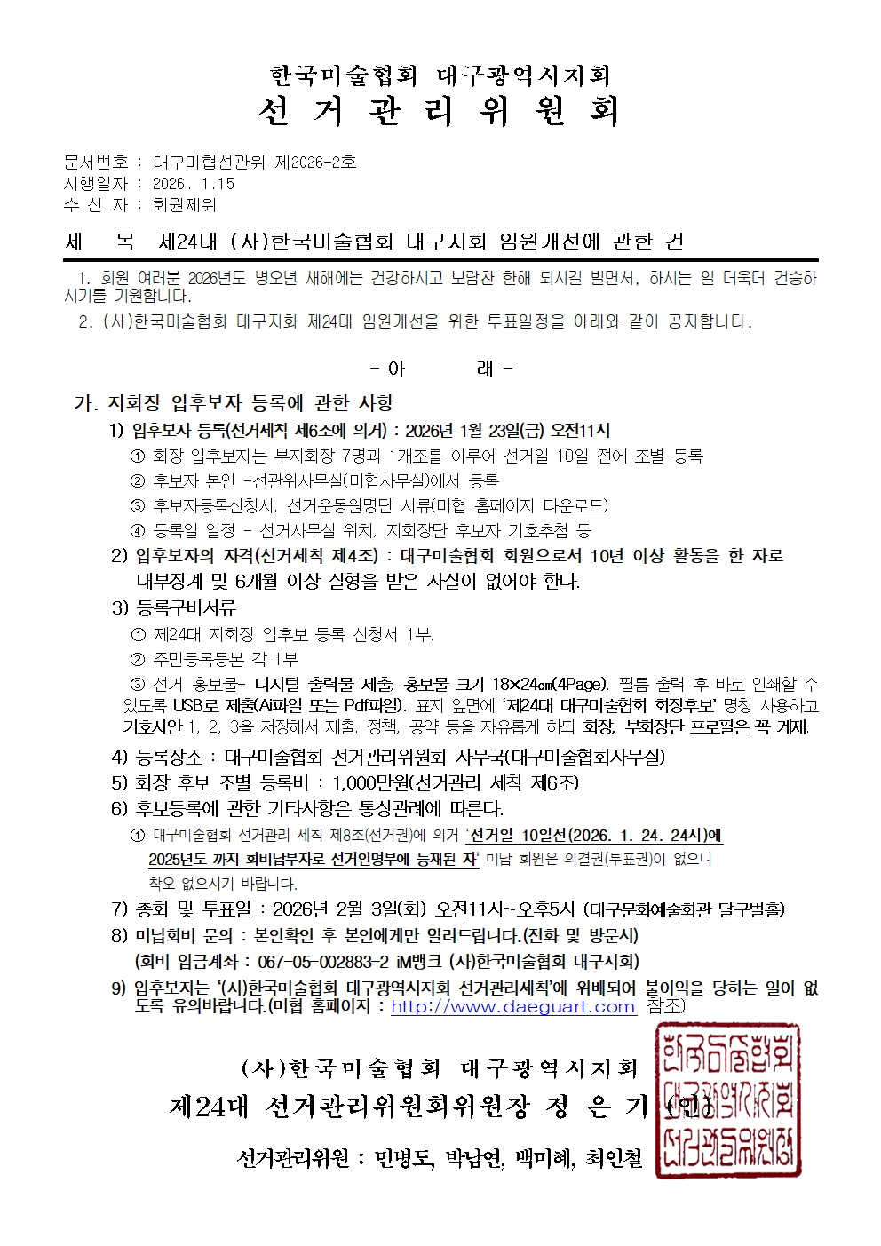 제24대 (사)한국미술협회 대구지회 임원개선에 관한 건
